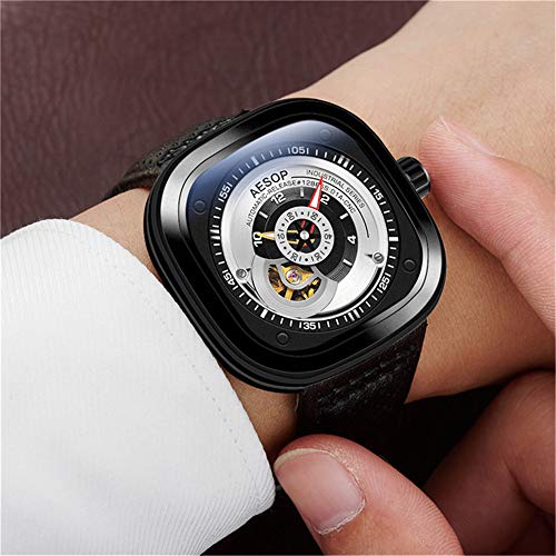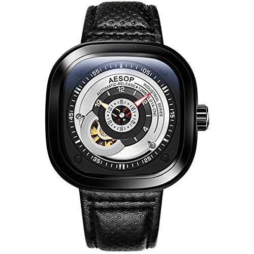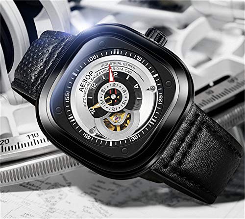 Aesop Men Skeleton Analog Automatic Self Winding Mechanical Wrist Watch with Leather Band Water